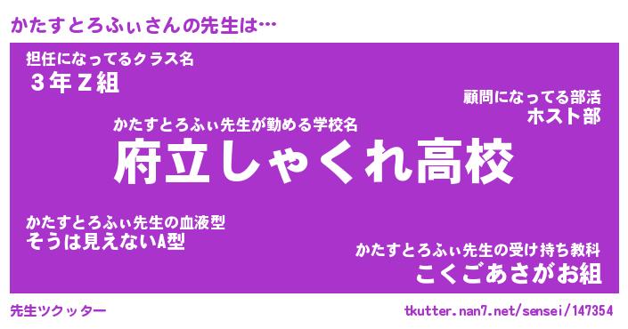 | ファンタジー風あだ名 | 『カタフェル』『ファントムカタス』 |