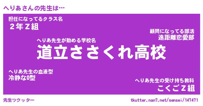 | ヒーロー風カッコイイあだ名 | 『スーパーヘリア』『ウルトラへりあマン』 |