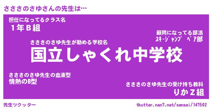 | 伝説のあだ名 | 『伝説のスナイパーさささのさゆ』 |