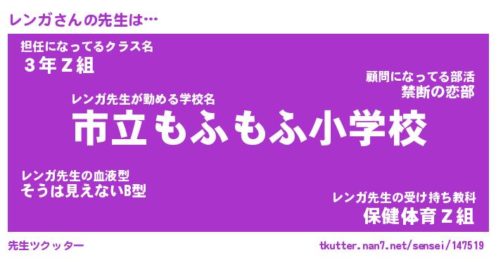 | ファンタジー風あだ名 | 『レンフェル』『エターナルレンガー』 |