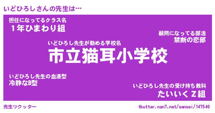 | ファンタジー風あだ名 | 『イドフェル』『エターナルイドヒロシー』 |