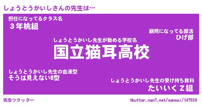 | 肩書あだ名 | 『しょうとうかいし社長』 |