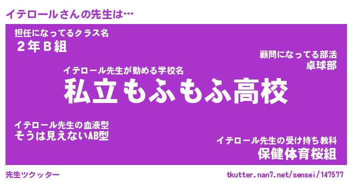 | ヒーロー風カッコイイあだ名 | 『スーパーイテロール』『魔戒騎士イテ』 |