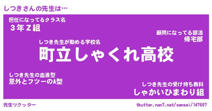 | ファンタジー風あだ名 | 『シツフェル』『エターナルシツキー』 |