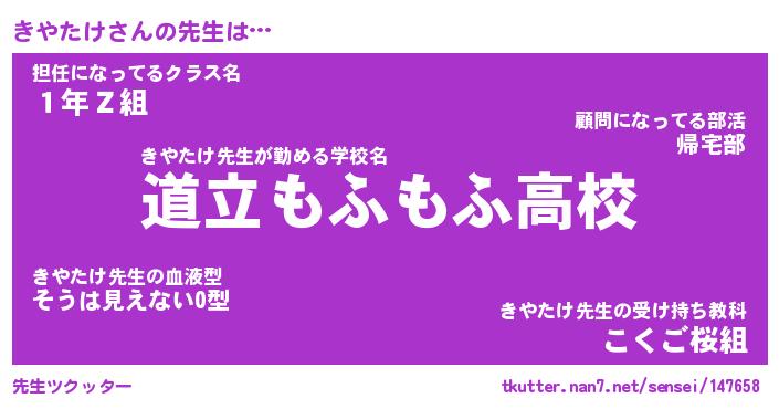 | ファンタジー風あだ名 | 『キヤフェル』『エターナルキヤタケー』 |