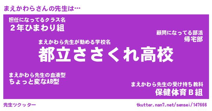 | ファンタジー風あだ名 | 『マエフェル』『エターナルマエカワラー』 |