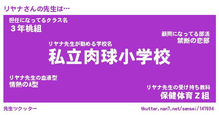 | 意味不明あだ名 | 『ペロリンリヤナ』『リヤナフォーエバー』 |