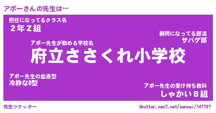| ファンタジー風あだ名 | 『アポフェル』『エターナルアポーー』 |