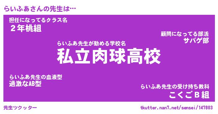 | ヘコむあだ名 | 『らいふぇ~』『豆乳』『らいお』 |