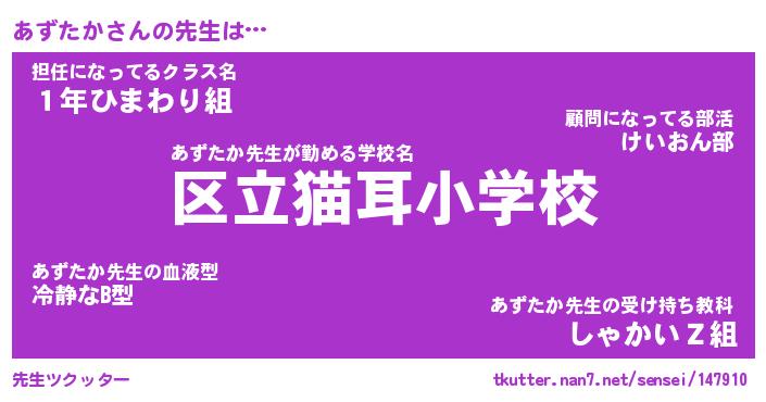 | 意味不明あだ名 | 『ペロリンあずたか』『永久保存あずたか』 |