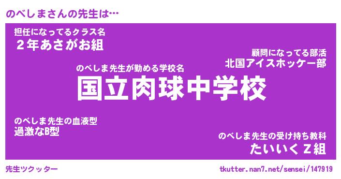 | 欧米人風あだ名 | 『マイケルのべしま』『ウサインのべしま』 |