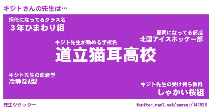 | ファンタジー風あだ名 | 『キジフェル』『エターナルキジトー』 |
