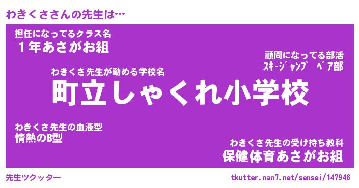 | 意味不明あだ名 | 『ペロリンわきくさ』『永久保存わきくさ』 |