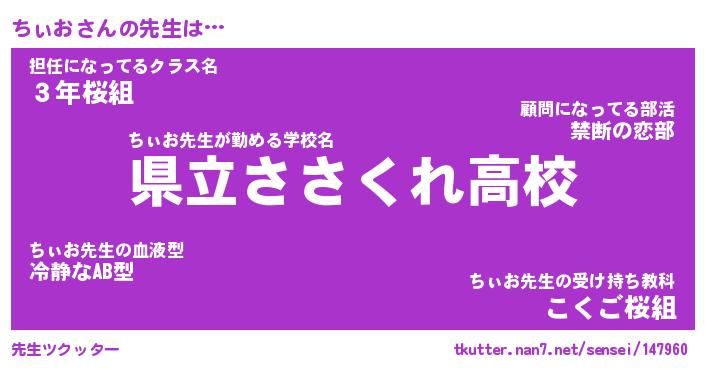 | ファンタジー風あだ名 | 『チィフェル』『エターナルチィオー』 |