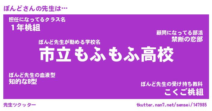 | ファンタジー風あだ名 | 『ボンフェル』『エターナルボンドー』 |