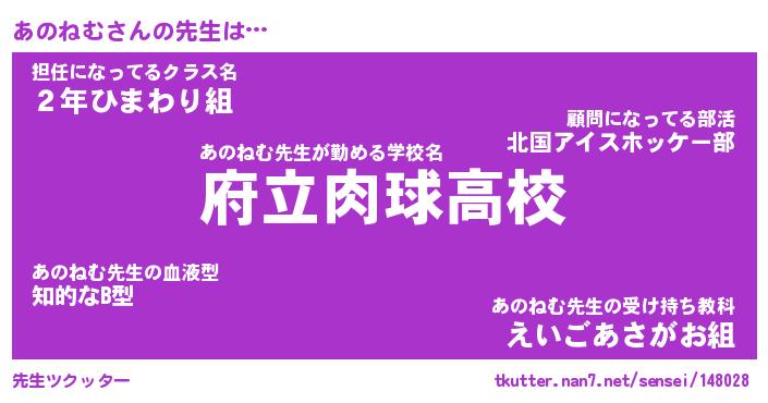 | 意味不明あだ名 | 『ペロリンあのねむ』『永久保存あのねむ』 |