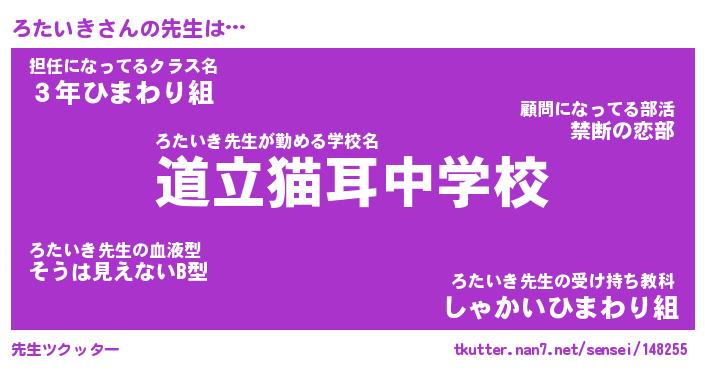 | 意味不明あだ名 | 『ペロリンろたいき』『永久保存ろたいき』 |