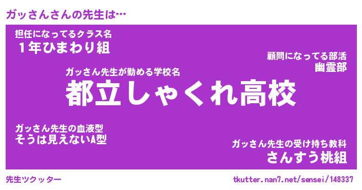| 意味不明あだ名 | 『ペロリンガッさん』『永久保存ガッさん』 |