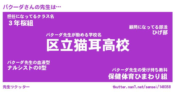 | 意味不明あだ名 | 『ペロリンバクーダ』『永久保存バクーダ』 |