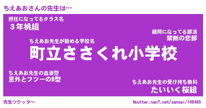 | 意味不明あだ名 | 『ペロリンちえあお』『永久保存ちえあお』 |