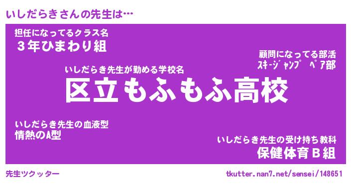 | ヘコむあだ名 | 『いしにゅー』『酢こんぶ』『いしお』 |