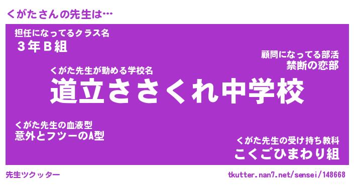 | ヘコむあだ名 | 『くがもー』『酢こんぶ』『くが太郎』 |