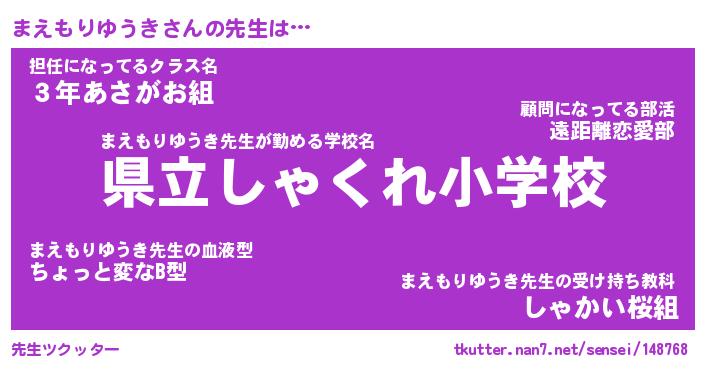 | 恥ずかしいあだ名 | 『プリティーまえもりゆうき』『まえちん』 |