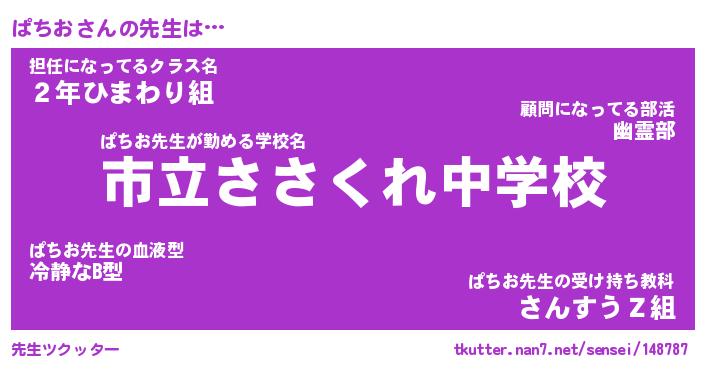 | 意味不明あだ名 | 『ペロリンぱちお』『ぱちおフォーエバー』 |