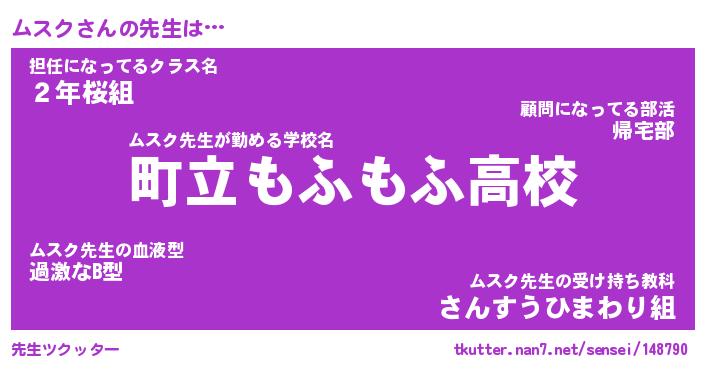 | ポケモン風あだ名 | 『ムスチュウ』『ムスクダネ』 |