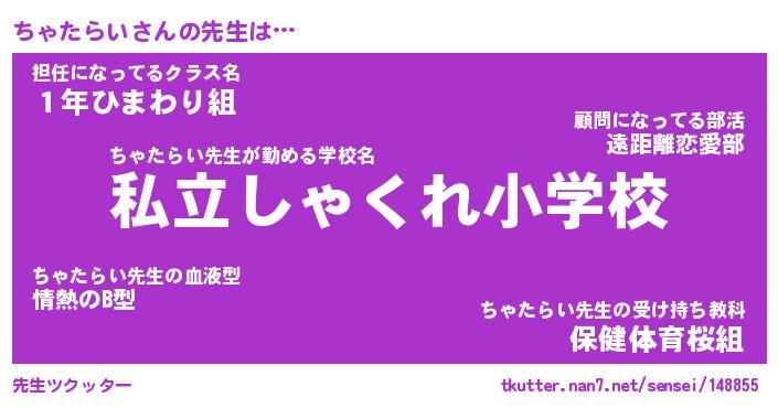 | 伝説のあだ名 | 『伝説のスナイパーちゃたらい』 |