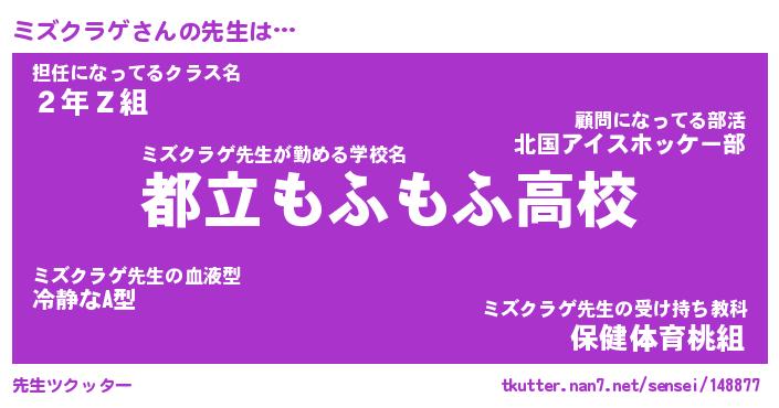 | ファンタジー風あだ名 | 『ミズフェル』『エターナルミズクラゲー』 |