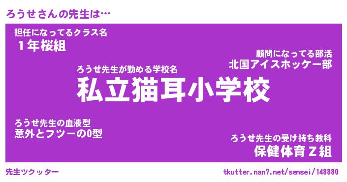| ヘコむあだ名 | 『ろうにー』『酢こんぶ』『ろう太郎』 |
