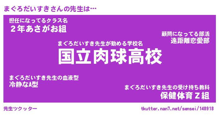 | ヘコむあだ名 | 『まぐふぇ~』『酢こんぶ』 |