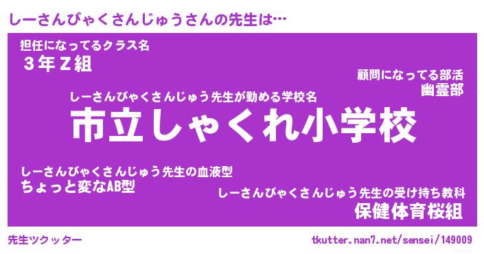 | 伝説のあだ名 | 『伝説のスナイパーしーさんびゃくさんじゅう』 |