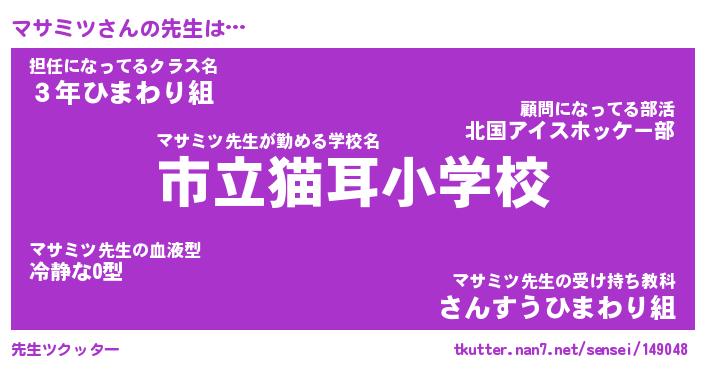 | 意味不明あだ名 | 『ペロリンマサミツ』『永久保存マサミツ』 |