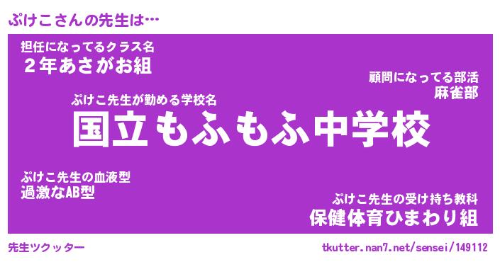 | ヘコむあだ名 | 『ぷけにゅー』『なまこ酢』 |