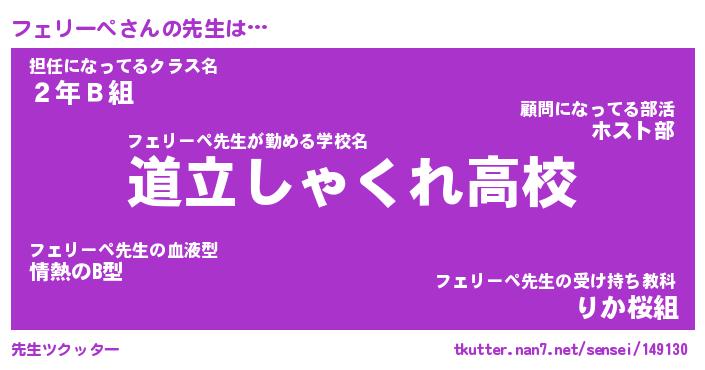 | ファンタジー風あだ名 | 『フェフェル』『エターナルフェリーペー』 |