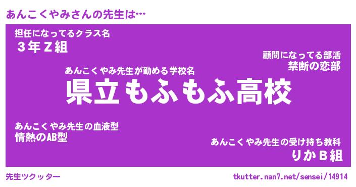 | ヘコむあだ名 | 『あんにゅー』『レバニラ』『あんお』 |
