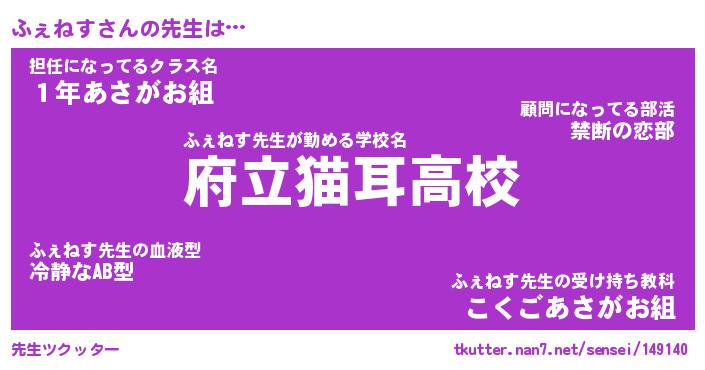 | ファンタジー風あだ名 | 『フェフェル』『エターナルフェネスー』 |