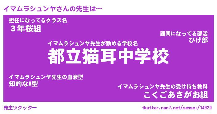| 意味不明あだ名 | 『ペロリンイマムラシュンヤ』 |