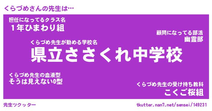 | ヘコむあだ名 | 『くらもー』『つくし』『くらっちょ』 |