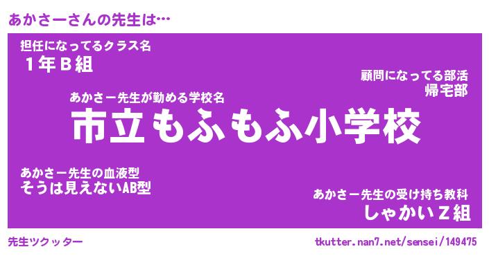 | ヘコむあだ名 | 『あかにゅー』『つくし』『あか太郎』 |
