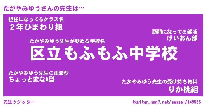 | 肩書あだ名 | 『たかやみゆう店長』『たかやみゆう担任』 |