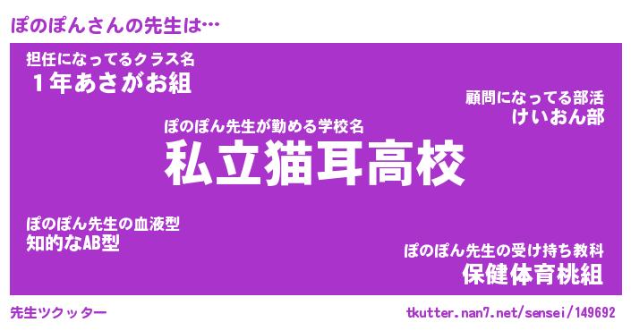 | 意味不明あだ名 | 『ペロリンぽのぽん』『永久保存ぽのぽん』 |