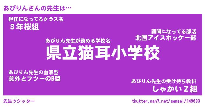 | 意味不明あだ名 | 『ペロリンあぴりん』『永久保存あぴりん』 |