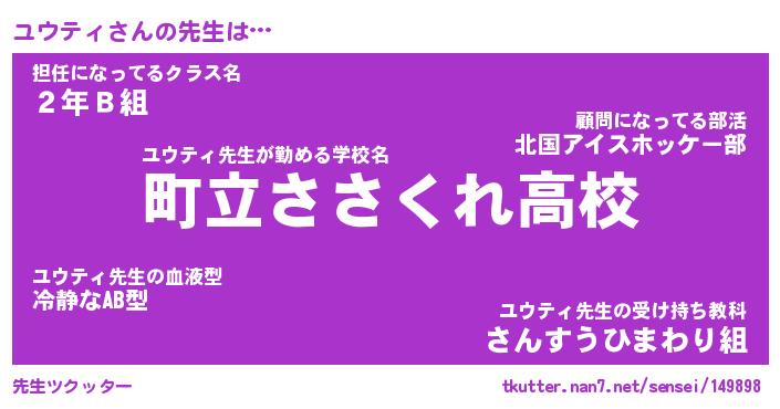| ポケモン風あだ名 | 『ユウチュウ』『ユウテダネ』 |