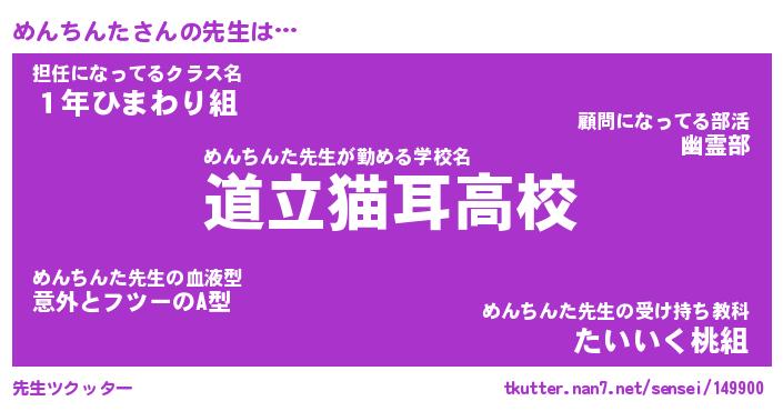 | ファンタジー風あだ名 | 『メンフェル』『エターナルメンチンター』 |