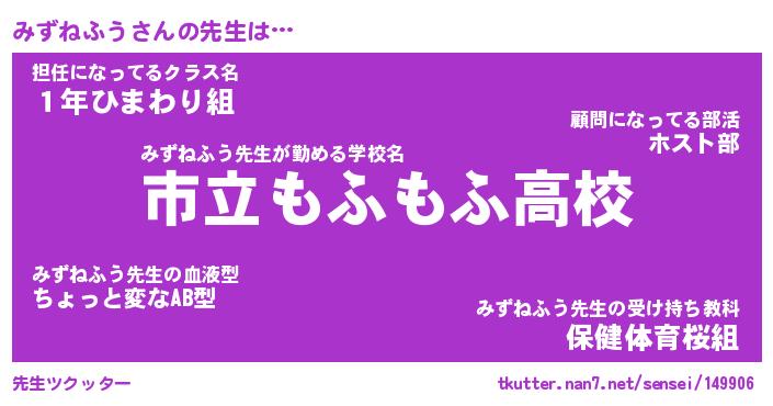 | ファンタジー風あだ名 | 『ミズフェル』『エターナルミズネフウー』 |