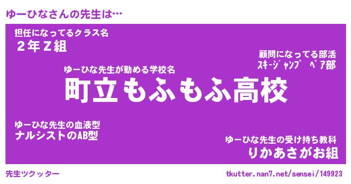 | 意味不明あだ名 | 『ペロリンゆーひな』『永久保存ゆーひな』 |