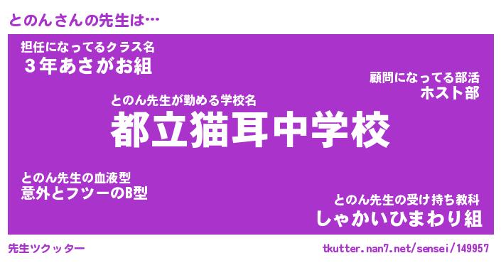 | ヘコむあだ名 | 『とのにー』『酢こんぶ』『とのっ子』 |